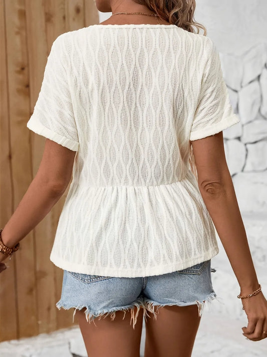 Tied Asymmetrical Neck Cold-Shoulder Blouse