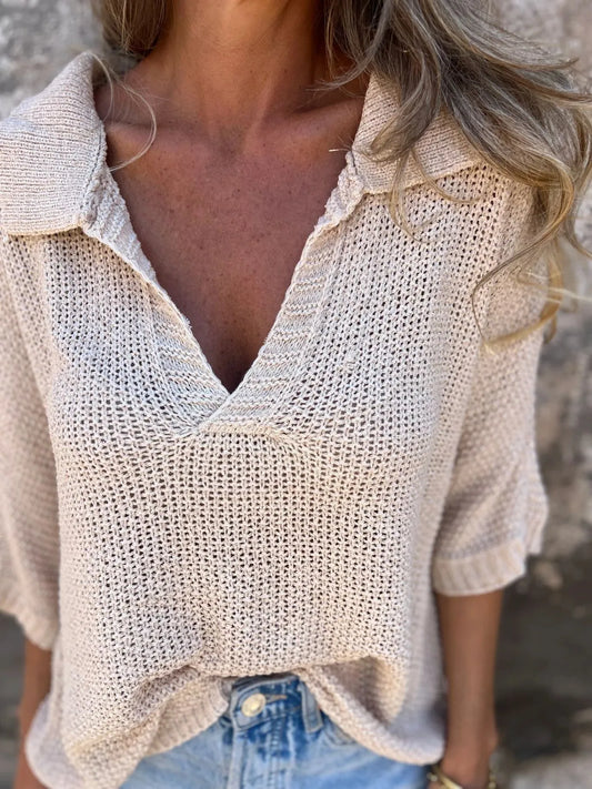 Full Size Casual V-Neck Knit Sweater Plus Size