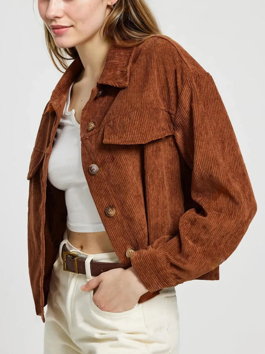 Perfee Baseball Collar Snap Down Long Sleeve Jacket