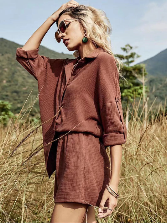 Button-Up Shirt and Shorts Set
