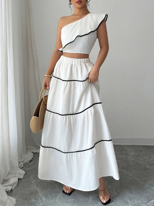 One-Shoulder Ruffle Top and Skirt Two-Piece Set
