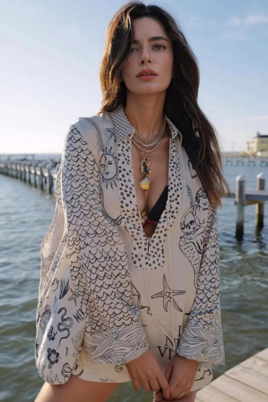 Devine Tie Front Contrast Plaid Shirt and Shorts Set