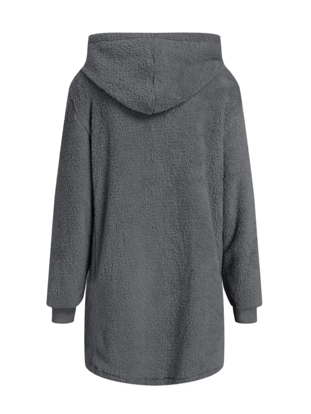 Fuzzy Pocketed Zip Up Long Sleeve Hooded Jacket
